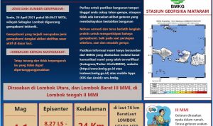 “Apalagi dengan adanya informasi bermunculan pandemi Covid-19 ini yang bermutasi dengan varian yang baru, harus menjadi atensi bersama,” kata Wagub saat rapat kesiapan antisipasi Eskalasi Outbreak dan potensi transmisi Covid-19, kunjungan skala Nasional dan International di NTB, Kamis (10/6/2021) di Lapangan Bhara Daksa Polda NTB.