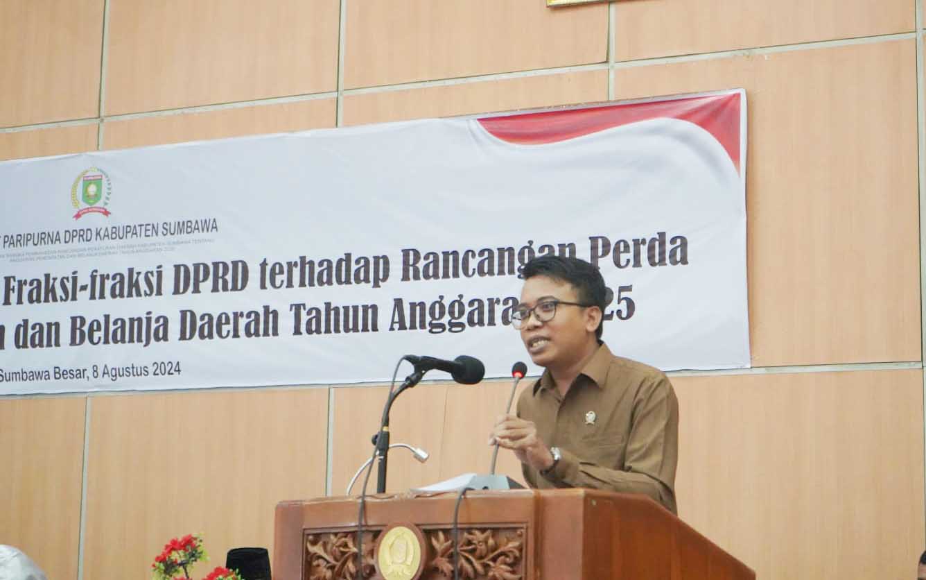 Demikian ditegaskan Cecep Lisbano, S.Ip, M.Si juru bicara Fraksi Hanura Bersatu DPRD Kabupaten Sumbawa, pada paripurna penyampaian Pandangan Umum Fraksi-Fraksi Dewan tentang penjelasan Bupati Sumbawa terhadap Rancangan Peraturan Daerah Kabupaten Sumbawa Tentang Anggaran Pendapatan Dan Belanja Daerah Tahun Anggaran 2025, Kamis (8/8/2024) di kantor DPRD Sumbawa.