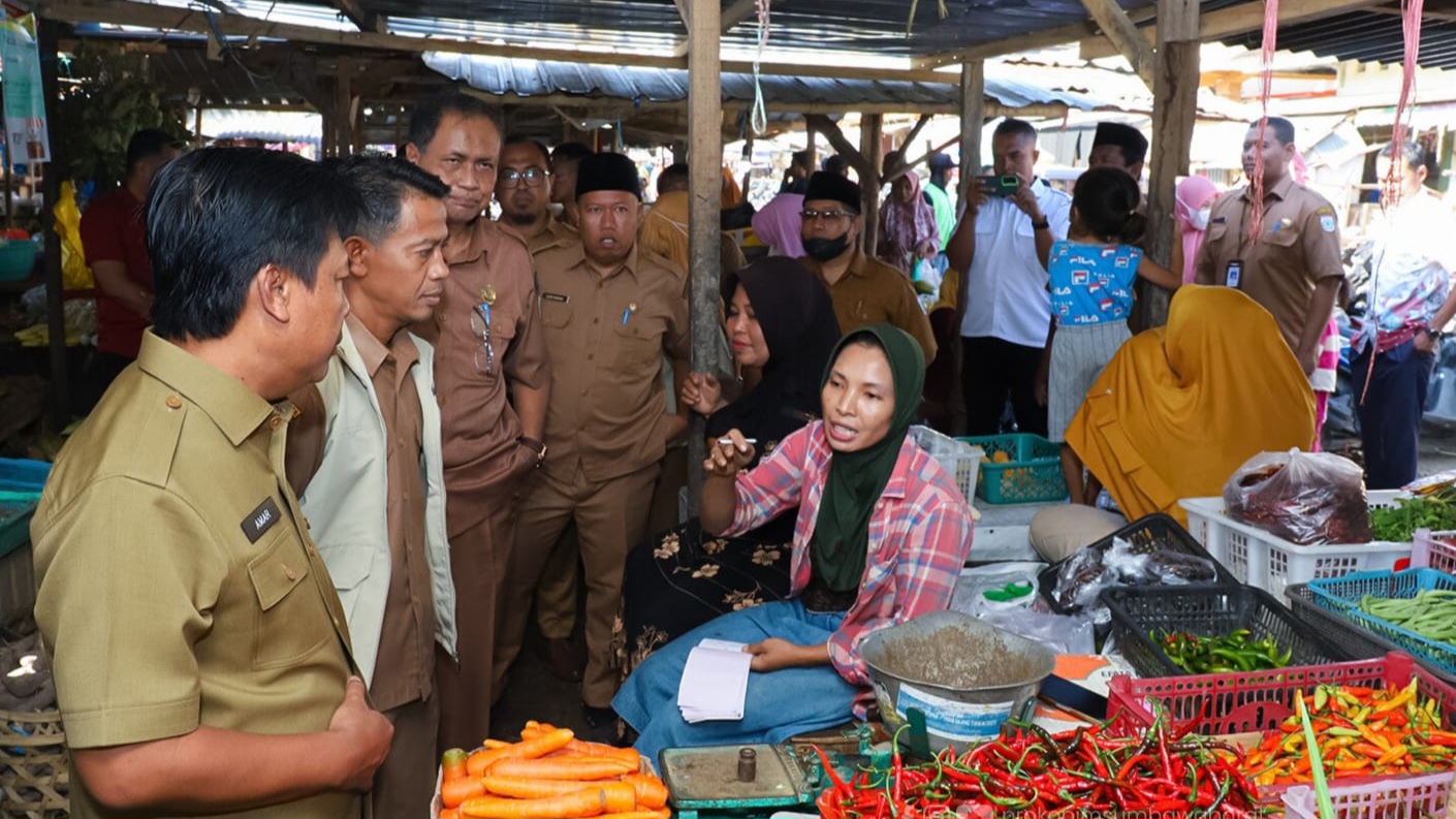 Bupati juga melakukan dialog dengan para pedagang terkait harga barang kebutuhan pokok masyarakat yang berada di lapak pedagang sembako, dan memang ada kenaikan harga tapi relative masih terkendali, seperti harga cabai yang lonjakannya sangat signifikan, ini yang akan terus dipantau agar harganya dapat terjangkau.