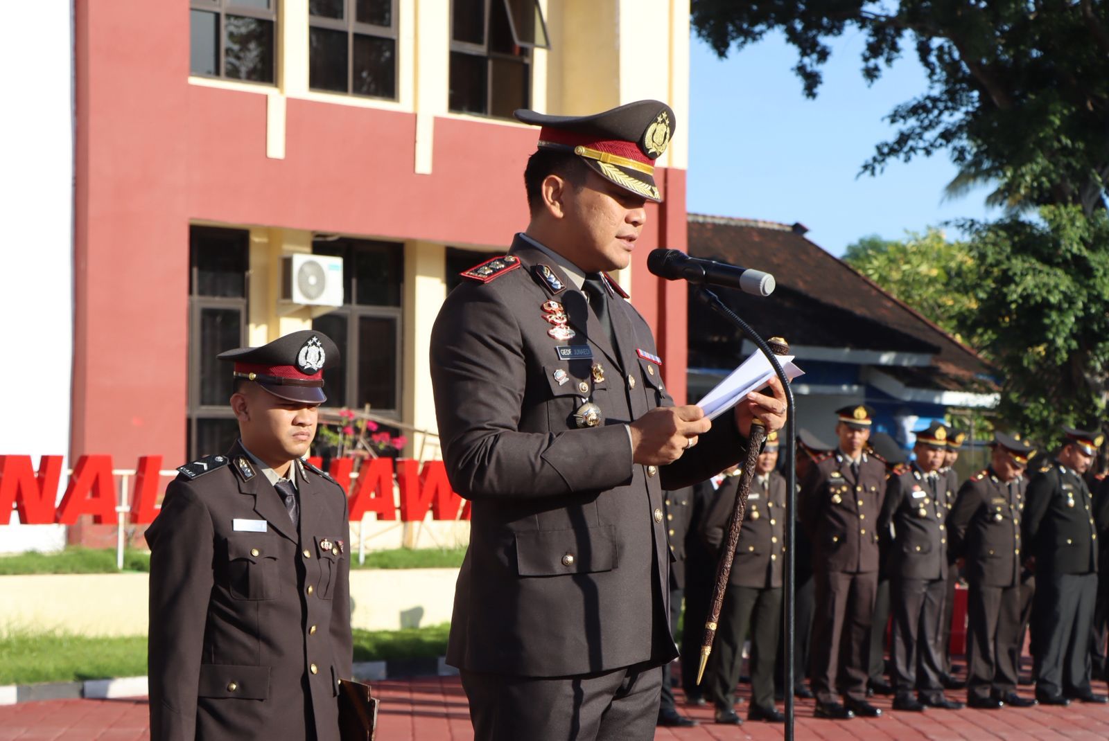 Kegiatan upacara ini dipimpin langsung oleh Kapolres Sumbawa AKBP Bagus Nyoman Gede Junaedi, S.H., S.I.K., M.A.P., yang diikuti oleh seluruh jajaran Polres Sumbawa mulai dari perwira hingga bintara, aparatur sipil negara (ASN) dilingkungan Polres Sumbawa.