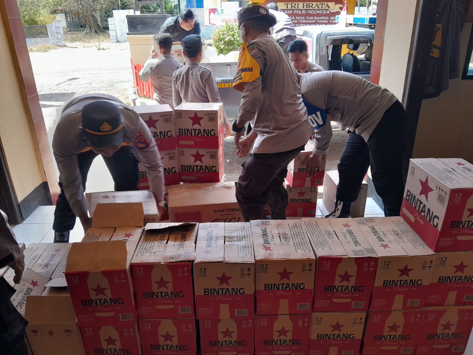 Kapolsek Empang, menjelaskan bahwa total barang bukti yang berhasil diamankan dari seluruh lokasi meliputi 142 botol Bir Bintang, 38 botol Anggur Merah, dan 28 slop rokok ilegal tanpa cukai.